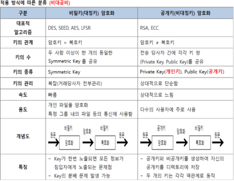 | 암호화 기술 | 내용 | 적용 알고리즘 |