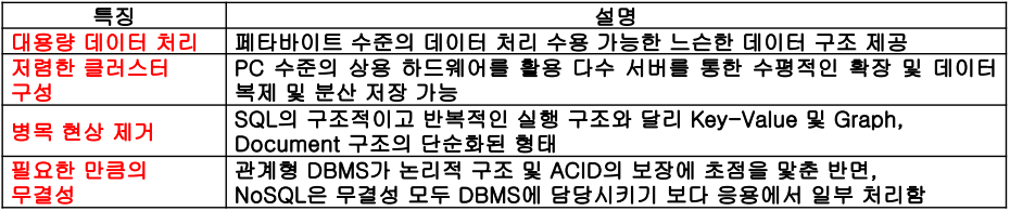 - 분산 환경에서 단순 검색 및 Data 추가 작업 시 처리 효율과 빠른 응답 속도를 위한 Key/Value 기반의 DBMS
