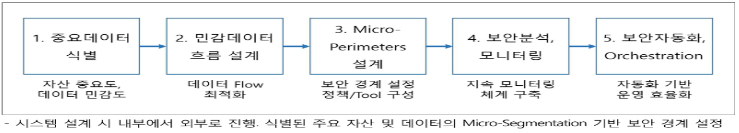 - 내·외부 사용자와 프로세스를 신뢰하지 않는 원칙하에 모든 사용자와 디바이스, 어플리케이션에 대해 확인을 요구하는 보안 모델