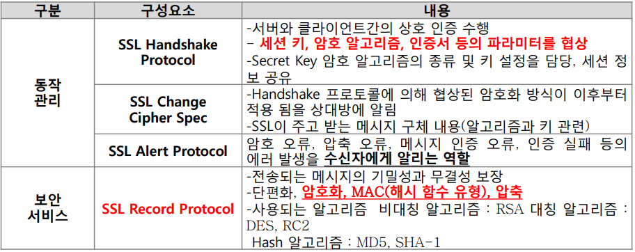 - TLS(Transport Layer Security)로 표준화 되었으며, 기본적으로 인증(Authentication), 암호화(Encryption), 무결성(Integrity)을 보장