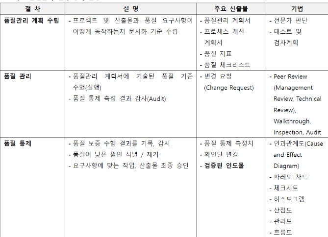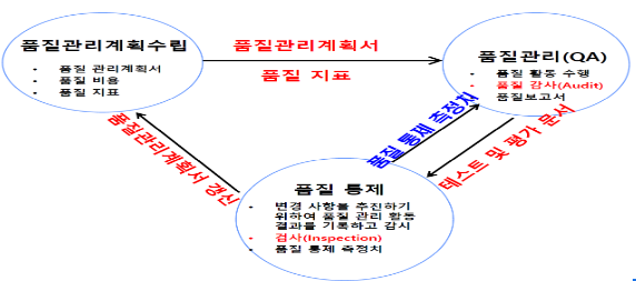 어진 요구사항을 충족시키는데 필요한 품질정책, 품질목표, 품질 관련 책임사항들을 결정 및 수행하는 회사 차원의 모든 활동