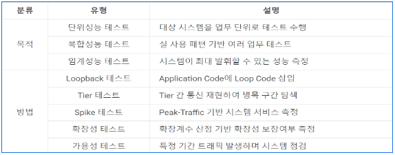 - 시스템 요구 성능을 감당할 수 있는지 성능상의 문제 여부 검증하는 시스템 테스트 기법