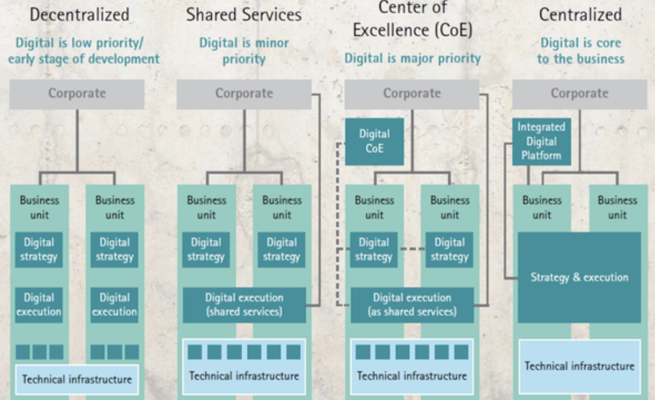 - 분산, 공유, COE, 집중화 모델
