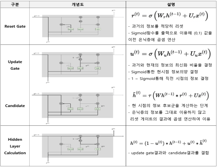 - 성능은 LSTM과 유사하면서 복잡했던 LSTM의 구조를 간단화