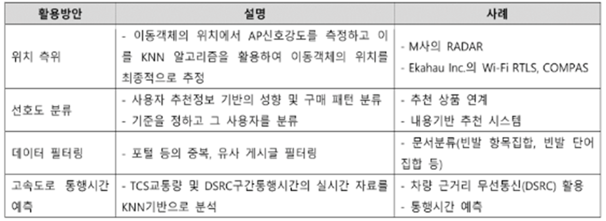 - 신규 데이터(fingerprint)의 군집 할당을 위해 기존 모든 데이터와 신규 데이터 거리를 측정하여 최고 인접 다수결에 의해 군집에 할당하는 감독 학습 알고리즘
