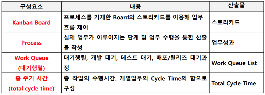 - Workflow를 표현하는 Kanban보드를 통해, 개발공정 시각화, 작업제한, 소요시간 최적화 기법을 통한 적시개발( just in time Development) Agile 방법론