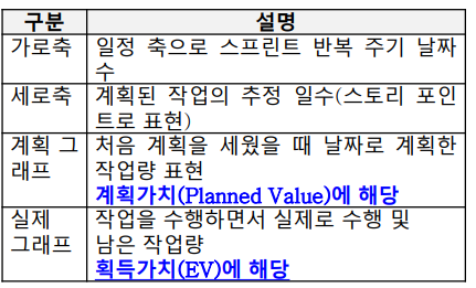 - . Daily Scrum Meeting시에 갱신 수행 완료 / 미완료를 차트 적용