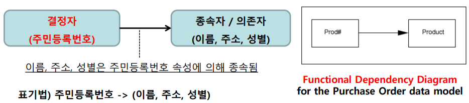 함수적 종속성(FD) 1. 정의 릴레이션 속성의 부분집합 X,Y에 대해 모든 튜플의 X값에 대한 Y값이 항상 하나인 성질 데이터들이 어떤 기준값에 의해 항상 종속되는 현상 기준값을 결정자 (Determinant; 결정요인)라 하고 종속되는 값을 종속자(Dependent) (의존자) 라고 함 2. 사례 및 유형 가. 사례 나. 유형 정보관리기술사/DB 데이터분석 2024.01.10